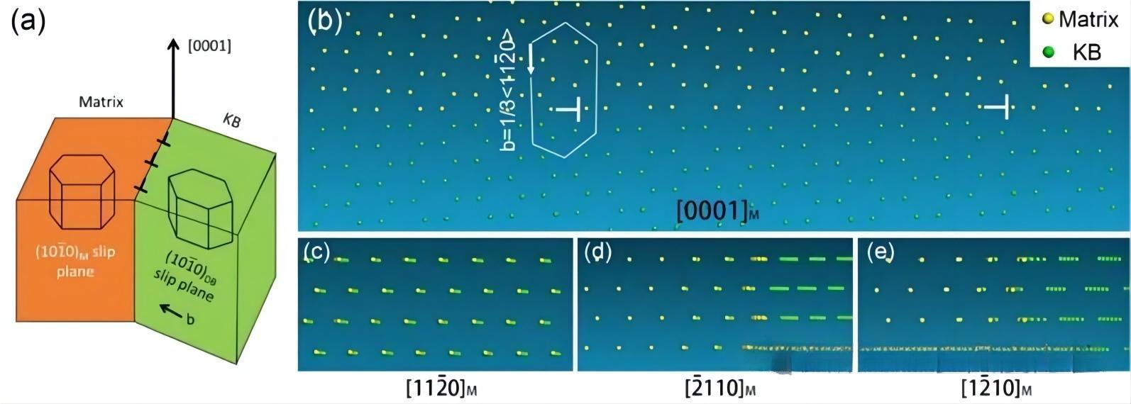 圖4 (a)KB形成過程示意圖;(b) 模擬了KB與基體的原子界面結(jié)構(gòu)。